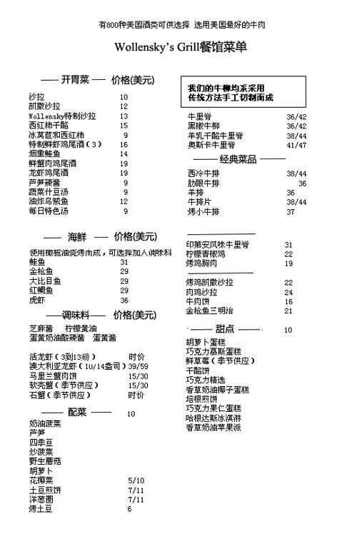 根據(jù)Smith&Wollensky牛排連鎖店網(wǎng)站的資料,這家餐廳每道菜在30~60美元之間,最貴的一款菜是14盎司的澳大利亞龍蝦,價(jià)值59美元。對(duì)于211萬美元的成交價(jià)格,Smith&Wollensky顯得很驚訝,他們稱“相對(duì)競(jìng)拍的天價(jià),這頓午餐花費(fèi)只是個(gè)零頭!
