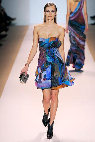在T臺(tái)上,比摔個(gè)仰面朝天更糟的莫過于一個(gè)功能失常的“衣櫥”了。馬修·威廉姆森(Matthew Williamson)品牌發(fā)布會(huì)上,有一個(gè)模特展示的比人們期望看到的要多,因?yàn)樗恍⌒穆度榱恕D且凰查g,觀眾們的注意力絕對(duì)不是服裝。