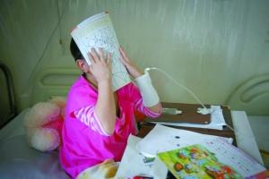 丹丹見到鏡頭馬上用書將臉遮擋起來。5歲女童丹丹被確診為急性重型再生障礙性貧血,入住北京道培醫(yī)院準(zhǔn)備骨髓移植。到昨日為止,她的父母已經(jīng)“消失”9天了。本報記者 吳江 攝
