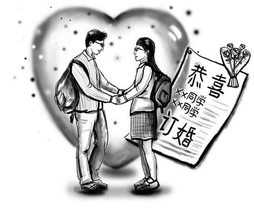 可當(dāng)事人的特殊身份,卻讓記者幾度懷疑這是虛假消息——訂婚的正是小記者的同學(xué),杭州某中學(xué)高三兩位剛剛參加完高考的學(xué)生,F(xiàn)在大學(xué)生結(jié)婚也少有人能接受,乍聽(tīng)說(shuō)這則中學(xué)校園里傳出的雷人婚訊,記者半晌沒(méi)回過(guò)神來(lái)。