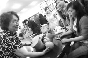 產(chǎn)科專家蓋教授(左)為“產(chǎn)科高級(jí)生命支持教程”培訓(xùn)班講課 記者 姚波 攝