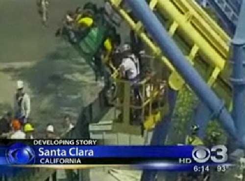 事故發(fā)生在加州圣塔克拉拉市的美國主題公園(Great AmericaThemePark)。據(jù)該市消防部門官員奧吉·威德曼介紹,當(dāng)?shù)貢r(shí)間中午12點(diǎn)15分,過山車載著興奮的游客向整個(gè)軌道的最高點(diǎn)進(jìn)發(fā),“就在即將要上爬的時(shí)刻突然停了下來”。