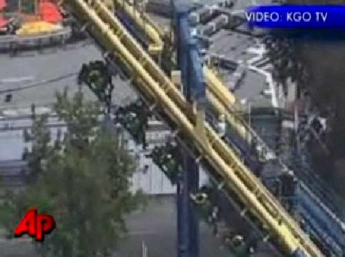 據(jù)悉,美國曾發(fā)生多起過山車事故。2009年7月25日,紐約州布朗克斯地區(qū)一家游樂園的迷你過山車發(fā)生脫軌故障,造成7名兒童受輕傷。2007年6月,阿肯色州一家游樂園發(fā)生過山車事故,12名游客在距地面50米的過山車軌道最高點(diǎn)倒掛半個(gè)小時(shí)。2006年7月9日,辛辛那提市派拉蒙游樂場的過山車在運(yùn)行途中突然停止造成27人受傷。2005年7月29日,加州迪斯尼樂園的兩輛過山車相撞造成60人受傷。1999年8月在舊金山美國最大的六面旗主題公園內(nèi),一輛過山車在即將翻滾時(shí)突然停止,28名乘客在近40攝氏度的高溫里被吊了4個(gè)小時(shí)。