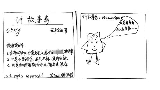 “故事券”:可以無限使用,小李心情郁悶的時候,小王就得使出渾身解數(shù)講故事逗她開心。