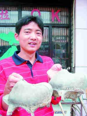 在汽車南站附近的一個茶館里,當(dāng)廖海兵把這雙鞋拿出來展示時,旁邊的人都圍了過來。一個“80后”的女孩聽說這是150多歲的老木屐,好奇地脫了鞋子穿上試了試!昂么﹩?”姑娘笑答:“好重,我怕走起來會往前面栽!庇浾哂檬值嗔说啵@雙鞋差不多有2公斤重。廖海兵說:“以前的人都穿布鞋,怕打濕了腳,就把木屐套在外面穿,等于是穿兩雙鞋走路。”(實習(xí)生 李欣 記者李霞)