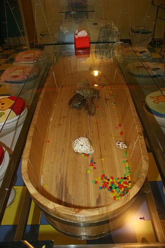 便便滿屋飯?zhí)糜幸晃幻琅习迥铮刻於己荛_心的樣子。在談到為什么會開這么一家衛(wèi)浴主題的餐館時,店主李女士說:“原來看到國外有人做過類似的主題餐廳,我很喜歡,就開了一家。我們的餐具都是專門定制的,非常特殊,充滿童趣。現(xiàn)在我們的顧客大部分是10到35歲的年輕人,目的是讓他們能在這里解壓、釋放!
