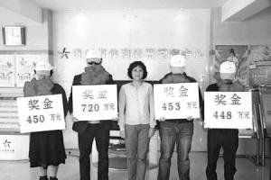 網(wǎng)民點(diǎn)評(píng):從圖上來看,中獎(jiǎng)獎(jiǎng)金是從貴州省體育彩票管理中心頒出的,領(lǐng)獎(jiǎng)人頭戴棒球帽,胸前戴朵大紅花,為了不被拍到正面,全都低下了腦袋!邦I(lǐng)獎(jiǎng)該高興啊,從這圖來看,怎么看都是很沮喪!本W(wǎng)民說,下次再有中獎(jiǎng)?wù),干脆搞個(gè)蒙面舞會(huì)。
