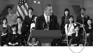 不久前,奧巴馬剛剛結(jié)束訪華,此行不僅讓奧巴馬成為各大媒體關(guān)注的焦點,同時也使一位神秘女子成為網(wǎng)絡(luò)紅人。11月16日在上?萍拣^會場,出現(xiàn)在奧巴馬身后的一名黑衣女子被攝入媒體鏡頭中,其亮麗的外形、獨特的氣質(zhì)吸引了眾多網(wǎng)民的眼球,網(wǎng)友迅速展開對女孩的“人肉搜索”。范冰冰親戚?楊瀾侄女?或者又是一場炒作?種種未經(jīng)確定的猜測充斥著各大論壇,也為黑衣女孩的身份蒙上了一層神秘的面紗。
