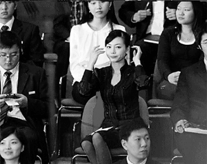 11月16日13時,對中國進(jìn)行國事訪問的美國總統(tǒng)奧巴馬走進(jìn)上?萍拣^會場,與中國青年展開對話。但是和奧巴馬的演講相比,現(xiàn)場攝影記者對一名黑衣女子表現(xiàn)出了更大的興趣。這名美女在現(xiàn)場脫掉紅色外套露出黑色套裝的全過程被記者用相機(jī)記錄下來,被制作成GIF動畫上傳網(wǎng)絡(luò),隨后這組動畫在網(wǎng)上論壇以及QQ群里廣泛傳播,隨后又有網(wǎng)友將奧巴馬演講視頻中有關(guān)該女子的片段截圖上傳,黑衣美女的美貌和氣質(zhì)迅速傾倒眾人。