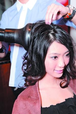 Step3一邊用風(fēng)罩吹頭,一邊大幅度撥松發(fā)根,烘干頭發(fā)。同時要推松發(fā)根,維持十多秒即可。