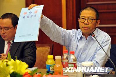 11月30日,農(nóng)夫山泉股份有限公司董事長(zhǎng)鐘睒睒在新聞發(fā)布會(huì)上展示有關(guān)部門出具的同批次產(chǎn)品的檢驗(yàn)合格報(bào)告。新華社記者王定昶攝