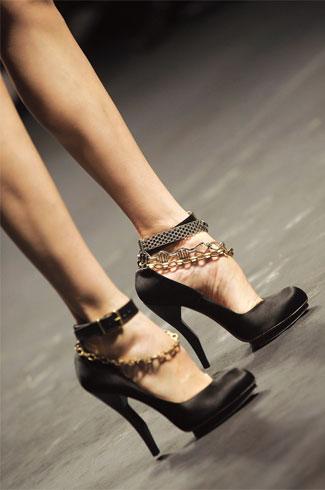 不景氣時(shí)期,女人的鞋跟似乎會變高,很顯然,本季天馬行空的鞋形正是對經(jīng)濟(jì)蕭條的一種藐視。然而關(guān)于高跟鞋究竟象征著女權(quán)還是男權(quán)的爭論已經(jīng)持續(xù)了幾十年,時(shí)尚史學(xué)家Giorgio Riello 與Peter McNeil 在《鞋子:從涼鞋到球鞋的歷史》一書中指出,1920 年代的婦女參政多以穿高跟鞋來展現(xiàn)女性特質(zhì),她們穿著鈕扣靴和高跟運(yùn)動(dòng)鞋向世人證明,參政并不會抹煞女人味。
