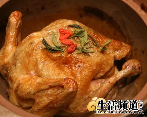 沙鍋盛放,開蓋子,雞香撲鼻而來。淡褐色的雞靜躺,墨綠的幾片茶葉點(diǎn)襯其間。挾一塊嫩白雞肉,細(xì)品,鮮咸香三味并入,一種未盡的余味蕩在口齒之間。這道菜是外婆家創(chuàng)店以來最暢銷也是最有口碑的一道菜。以至于人們都說,到外婆家,不吃龍井茶香雞,就等于白來。