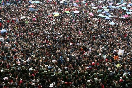 被迫滯留在廣州火車站的人數(shù)曾一度超過10萬人