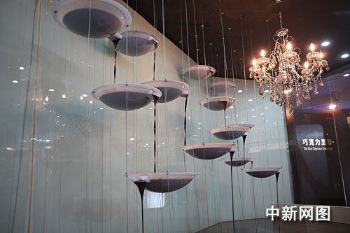 近日,在世界巧克力夢公園現(xiàn)場,記者搶鮮看到”中國最大巧克力瀑布”現(xiàn)身─在恒溫微控的玻璃屋里,每天流動著15噸的香味濃郁、香滑柔順的巧克力濃漿,加上水晶琉璃吊燈的投射光影,流動著現(xiàn)代中國的精致與浪漫唯美,世界巧克力夢公園總規(guī)劃師林正宗老師指出:”這座巧克力瀑布體現(xiàn)了巧克力的時尚藝術(shù),讓我們可以從觀賞的角度,看見巧克力除了飲食功能,更可以是一種公共藝術(shù)的全新表現(xiàn)模式。加上巧克力有著使人產(chǎn)生愉快情緒的成分,站在巧克力瀑布前方賞心悅目又浪漫,聞著巧克力香心情特好,預(yù)計1月29日開館后,將吸引數(shù)萬對情侶在這里留下珍貴的愛情照片,是我館的一大愛情亮點!