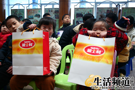 自15日傍晚開始,合肥市就飄起了雪花,隨著氣溫的逐步下降,雪越飄越大,到了16日晚上,整個合肥市包裹在一片銀裝素裹之中。2009年合肥的第一場雪,比以往來得更早、更大一些,但是紛紛飄落的雪花并沒有擋住溫暖的腳步。“愛心雅士利 溫暖中華行”千萬陽光工程全國公益捐贈活動于17日走進(jìn)安徽合肥,走進(jìn)合肥兒童福利院,走進(jìn)在這寒冬之中最急需幫助的人群心中。