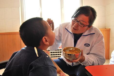 儀式結束后,雅士利愛心小組在青海省慈善總會領導的引領下來到西寧市兒童福利院。在福利院四樓,愛心小組與孤殘兒童一起做互動游戲,現場喜氣洋溢、充滿歡聲笑語。隨后,愛心小組在醫(yī)護人員的指導下仔細、認真地為孤殘兒童喂食午餐,這一幕,如冬日暖陽一般溫暖著孩子們的心靈。在福利院的大廳里有一個功德園,上面記錄了歷年來為兒童福利院捐款、捐物的單位和個人的名單和捐助金額,其中有國內外福利機構以及省內外的企業(yè)和個人。據李永蓮院長介紹,自兒童福利院成立以來,受到了社會各界人士的極大關懷和幫助,從1998年至今,西寧市兒童福利院共接受社會各界捐款、捐物有人民幣954719.46元,130美元,2725歐元。李院長說,社會各界對孩子們的關注和愛護,給孩子們帶來了希望,有力地促進了公益、福利事業(yè)的全面發(fā)展。