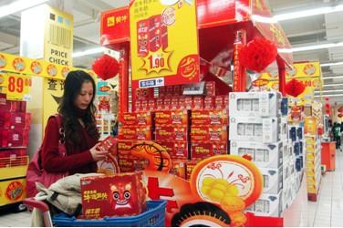 中新網(wǎng)2月9日電 春節(jié)將至,各大超市紛紛推出各種喜慶的年貨。蒙牛紅色“牛運金虎”和白色剪紙版紀念包裝牛奶,在今年的牛奶產(chǎn)品中尤為搶眼,許多消費者就是沖著大紅包裝的喜慶感和頭上頂著“!弊郑⒁狻芭_\當頭”的小老虎來的。業(yè)內(nèi)人士表示,除了蒙牛牛奶過硬的品質(zhì)外,產(chǎn)品中承載的“牛運文化”是其產(chǎn)品暢銷的主要原因。