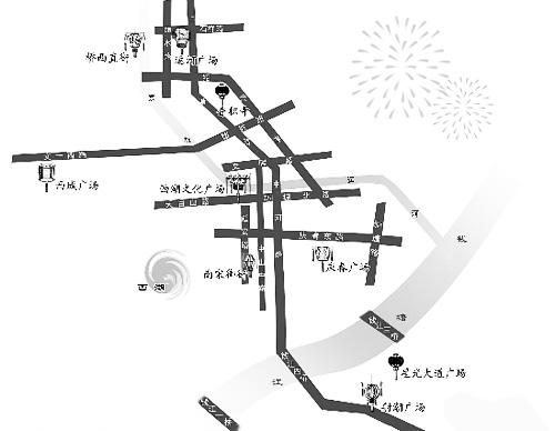 運(yùn)河文化廣場(chǎng)中心設(shè)置大型主題燈座,廣場(chǎng)南側(cè)江南戲臺(tái)(露天)將舉辦祈福2010運(yùn)河元宵燈彩音樂(lè)會(huì)。