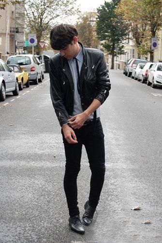 1.短款皮夾克 Vintage shop 2.淡藍色襯衫 ZARA 3.黑色瘦腿褲 topman 4.黑色系帶皮鞋 ZARA