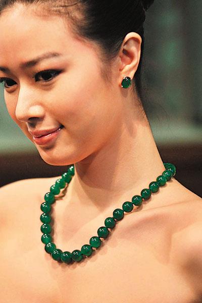 據(jù)香港文匯報(bào)報(bào)道,香港蘇富比下月7日舉行“瑰麗珠寶及翡翠首飾2010年春季拍賣會(huì)”,將呈獻(xiàn)320件閃爍絢麗的珠寶首飾,拍賣總估值逾3.69億港元。在蕓蕓珠寶中,最受注目非全長約530毫米、鑲嵌卡地亞鉑金鉆石扣飾的翡翠玉珠頸鏈莫屬。它由35顆直徑介乎12.55至15.04毫米的翡翠玉珠串連而成,顆顆頂級(jí)翡翠水份豐盈,溫潤亮澤,估價(jià)高達(dá)3,800萬至5,000萬港元,是全場估價(jià)最高的珍品。