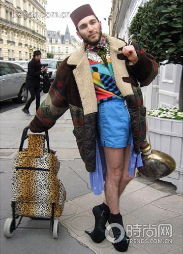 濟(jì)公+妖男+流浪漢style的美妙融合!別看他乍一眼好像穿得很隨便很破爛,這一身一點(diǎn)也不便宜的,Stella McCarthy的女裝(注意是女裝!)無(wú)跟鞋(沒(méi)記錯(cuò)的話),還有那虎皮包應(yīng)該都價(jià)值不菲!