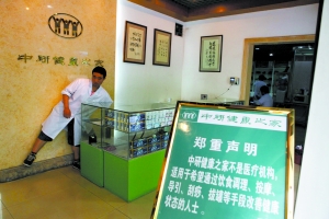 5月20日,中國中醫(yī)科學(xué)院東側(cè),中研健康之家內(nèi)掛著一個(gè)牌匾,上面寫著“中研健康之家不是醫(yī)療機(jī)構(gòu),適用于希望通過飲食調(diào)理、按摩、導(dǎo)引、刮痧、拔罐等手段改善健康狀態(tài)的人士。”