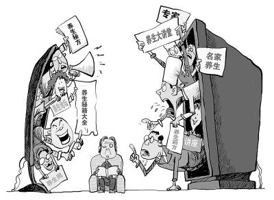 “如今,但凡有點(diǎn)中醫(yī)常識的人就敢談養(yǎng)生!币晃粯I(yè)內(nèi)人士透露,全國有400家出版社出版健康類圖書數(shù)千種,真材實(shí)料的少,濫竽充數(shù)的多。一些文化公司也投身養(yǎng)生市場,以每個2—3萬元的價格,從出版社購買書號。