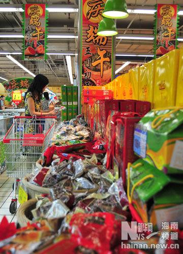 6月9日,海南海口市民正在挑選粽子。