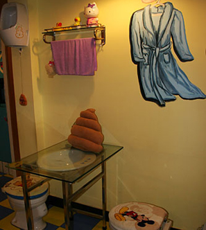 在北京地安門(mén)外大街上,有一家衛(wèi)浴主題的餐廳,叫便便滿(mǎn)屋飯?zhí),看它的名字就知道,它絕對(duì)是一家很“特殊”的餐廳。便便滿(mǎn)屋飯?zhí)檬潜本┦准矣眯l(wèi)浴為主題的餐廳。