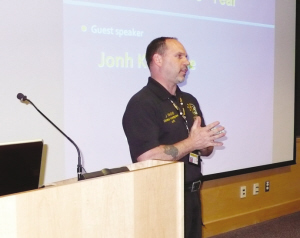 舊金山加大犯罪分析專家John Racine現(xiàn)場介紹安全常識,比如“雙肩背書包不可單肩背”,并當場扮演歹人如何能輕而易舉搶走學(xué)生肩頭的背包。在街頭行走時要顯示自信心,萬一感覺有人尾隨時,可以采取穿越馬路和到鄰近商店求助報警的方式來保護自己。(劉海平)