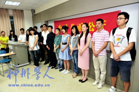 2010年9月19日,在韓中國學(xué)聯(lián)舉辦首屆以“海納百川,有容乃大”為主題的公開納新活動(dòng),李忠輝會(huì)長及學(xué)聯(lián)各部門的負(fù)責(zé)人擔(dān)任了本次公開納新活動(dòng)的評(píng)審委員。招新工作進(jìn)行得井然有序,同學(xué)們普遍反映效果良好,呈現(xiàn)出一派生氣勃勃的新氣象。