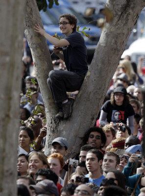 在演講開始前兩小時(shí),現(xiàn)場(chǎng)已擠滿上萬名學(xué)生,“奧巴馬”幾乎成了熟人見面時(shí)打招呼的用語。當(dāng)天空盤旋軍用直升機(jī)時(shí),所有人都抬頭仰望,呼喊“奧巴馬,奧巴馬!”