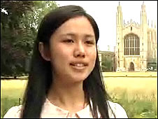 四位中國留學(xué)生接受采訪,談他們心目中的劍橋大學(xué)、作為“劍橋人”的感受和體會。