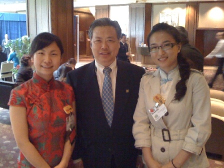她們的熱情服務(wù)很快就吸引了中國代表團(tuán)成員以及中國駐美使館官員們的注意。使館官員對她們的服務(wù)非常滿意,專程代表周文重大使對她們不辭勞苦的志愿服務(wù)表示感謝。中國駐紐約總領(lǐng)事彭加玉還專門駐足在展臺前,與她們親切交談,并與她們合影留念。在得知這些志愿者沒有飯吃的消息后,使館官員還自掏腰包,解決了幾位志愿者的飲食問題。這樣,中國來的志愿者就成了所有志愿者中最讓人羨慕的一組,因?yàn)樗麄兛梢韵碛煤虶20峰會官員一樣的就餐待遇。