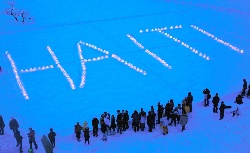 這次祝福祈愿燭火會(huì)是由國(guó)際大學(xué)的留學(xué)生會(huì)組織的。大家在校園內(nèi)的一塊空曠的雪地上用點(diǎn)燃的蠟燭拼寫(xiě)出一個(gè)大大的“HAITI”,并一起為在海地大地震中遭遇不幸的人們祈禱祝福,追悼亡靈。