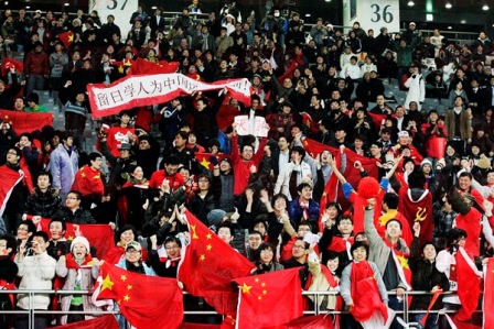 中新網(wǎng)2月11日電 據(jù)日本《中文導(dǎo)報(bào)》報(bào)道,2月10日,東亞四強(qiáng)賽進(jìn)行第二輪爭奪,在東京味之素體育場中國男足迎戰(zhàn)韓國男足,中國隊(duì)最終以3-0大勝韓國隊(duì),一舉改寫在國際A級賽事上32年對韓不勝的尷尬歷史。看臺上約二千名中國留學(xué)生的吶喊助威聲也貫穿了整場比賽。