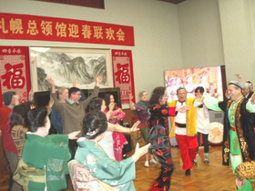 紅紅的燈籠、大紅的“!弊郑芽傤I(lǐng)館裝飾得紅紅火火,充滿著濃濃的年味。北海道的中國留學生及當?shù)靥匮钨e兩百多人歡聚一堂,共慶中華民族傳統(tǒng)佳節(jié)。