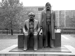 馬恩銅像雕塑,始建于上世紀(jì)七十年代的東德時(shí)期。據(jù)說,關(guān)于馬克思坐著而恩格斯站著的造型構(gòu)思,有兩種解釋,一是馬克思是德國(guó)人而恩格斯不是德國(guó)人,二是恩格斯是馬克思的戰(zhàn)友和學(xué)生。