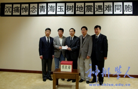 2010年4月21日上午,在韓中國留學(xué)生會會長李忠輝等代表全體留學(xué)學(xué)人向地震災(zāi)區(qū)捐款,駐韓中國大使館張鑫森大使接受了留學(xué)生的自愿愛心捐款。