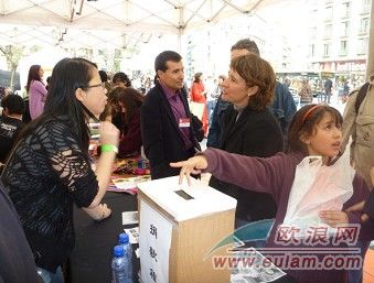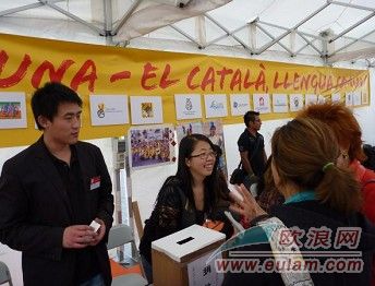 加泰羅尼亞語保護協會在SANT JORDI當天也組織了一系列的活動,這些活動也得到巴塞羅那中國學生學者聯誼會的積極參與。23日早上在VILATOMAT 2號的某個公立小學里,巴塞羅那中國留學生黃星星、張志軍、周子恒、項天宇、徐忱同學等人就積極參加他們的一系列活動。當天下午加泰羅尼亞語協會在市中心的大學廣場搭建了臨時活動地點,同時也給巴塞羅那中國學生學者聯誼會一個宣傳自己的“攤位”。熱情的中國留學生們除了教過往的當地人及小朋友寫中文名字以外,小書法家張志俊同學用中文寫了一些字畫,并剪裁成漢字“拼圖”,讓當地的小孩子們拼中文字,這些小孩子在玩樂之余,對中文產生了更加濃厚的興趣,留學生們借著這個活動,在推加泰蘭語影響力的同時也提高了中文的知名度。除此之外,中國留學生們不忘青海地震,還設立了專門的籌款箱,為青海地震籌款,在同學們的積極介紹下,路過的民眾都投下或多或少的零錢或紙幣,晚上活動結束的時候中國留學生為青海地震籌得捐款103歐元。