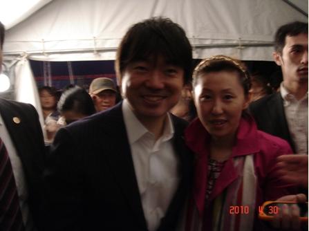 在大阪日本橋開辦四川料理店鳳家的中國女留學(xué)生汪哲有幸接到了邀請函,不但進入了會場,還坐在橋下知事很近的座位上,演出結(jié)束后,汪哲突然產(chǎn)生了一股勇氣,來到了橋下知事的身邊,她大膽地拉住了橋下知事的手,向橋下知事介紹了自己在大阪宣傳上海世博會的努力,橋下知事也被上海世博會的慶祝氣氛深深地感染了,顯得很有興趣地聽完了汪哲的自我介紹;接著汪哲乘勝追擊邀請橋下知事與她合影留念,并留下了珍貴的紀(jì)念照片。