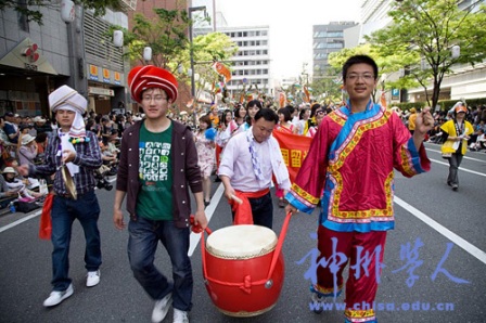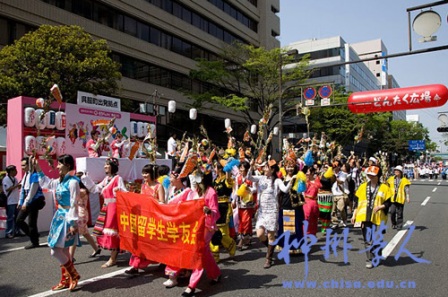 作為最能代表福岡博多的節(jié)日之一,也是西日本最有名的全民歡樂(lè)節(jié)之一,“博多打鼓節(jié)”起于平安時(shí)代,由一種稱(chēng)為“松囃子”的民間藝術(shù)演變而來(lái),最早的時(shí)候,它是向當(dāng)?shù)仡I(lǐng)主祝賀新年的儀式,如今已經(jīng)演變成為福岡地區(qū)傳統(tǒng)的節(jié)日,市民組織各式各樣的慶祝活動(dòng)。2010年度的博多打鼓節(jié),中國(guó)留學(xué)生報(bào)名踴躍,積極參與,“中國(guó)留學(xué)生方隊(duì)”列于壓軸位置,在各個(gè)留學(xué)生隊(duì)伍中,“中國(guó)留學(xué)生方隊(duì)”參加人數(shù)最多,展示了中國(guó)傳統(tǒng)的少數(shù)民族服飾服飾和舞獅表演,亮點(diǎn)頻現(xiàn)。