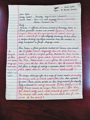 中新網(wǎng)5月31日電 據(jù)美國(guó)《世界日?qǐng)?bào)》報(bào)道,被以恐怖威脅(Terroristic Threats)罪名逮捕的中國(guó)留學(xué)生翟田田的移民代表律師海明28日呼吁華裔社區(qū)為其捐款,一則幫助改善翟田田在監(jiān)獄內(nèi)的生活,二來聘請(qǐng)刑事律師幫他洗脫罪名。