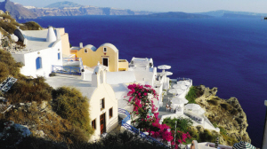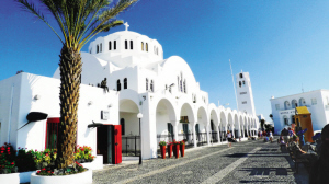 說到圣托里尼島,眼前自然便浮現(xiàn)出迷人的藍(lán)白二色。