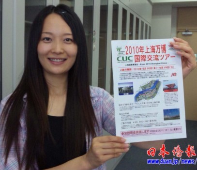 中新網(wǎng)6月23日電 據(jù)《日本僑報》報道,6月22日,日本千葉商科大學(xué)國際交流中心發(fā)出通知,該中心主辦的“2010上海世博會日中大學(xué)生交流之旅”于即日起開始征集參加者,預(yù)定9月中旬實施。