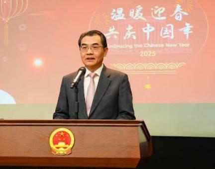 中新網(wǎng)東京1月24日電 (記者 朱晨曦)中國(guó)駐日本大使館近日舉辦2025年“溫暖迎春”新春招待會(huì)。吳江浩大使出席并致辭,施泳公使致祝酒辭,在日僑胞代表等300余人參加。
