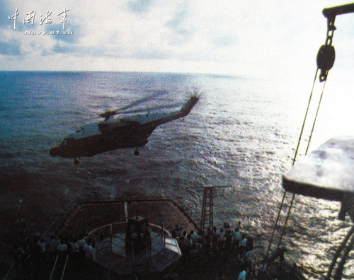 10月12日,天氣格外晴朗。發(fā)射導(dǎo)彈試驗(yàn)任務(wù)一切準(zhǔn)備就緒。這天下午14時(shí)30分,我率領(lǐng)機(jī)組人員精神抖擻地快步走到飛行甲板,地勤人員早已將飛機(jī)拉出機(jī)庫(kù)準(zhǔn)備好,等待飛行員檢查。 一切良好!我和機(jī)組人員充滿信心地跨入駕駛艙,系好安全帶,等待起飛的命令。14時(shí)48分,艦上飛行指揮員、團(tuán)長(zhǎng)郭文才向機(jī)組發(fā)出了“開車”的命令,空中機(jī)械師立即啟動(dòng)發(fā)動(dòng)機(jī),頓時(shí)旋翼飛轉(zhuǎn)、馬達(dá)轟鳴。14時(shí)53分,指揮員發(fā)出了“起飛”的命令,我立即向甲板指揮員發(fā)出“解除系留”的信號(hào),“系留已解除!”我立即接通自動(dòng)駕駛儀,上提變距桿,飛機(jī)“刷”的一下離開甲板,低著頭吼叫著離艦起飛。