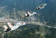 馬來西亞海軍的蘇-30戰(zhàn)機與美國海軍的F/A-18戰(zhàn)斗機組成編隊從華盛頓號航母上空飛過