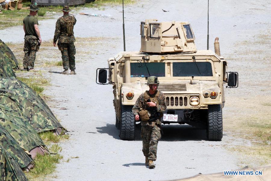 美菲兩棲聯(lián)合軍演第二天,當(dāng)天來(lái)自美國(guó)兩極攻擊艦“好人理查德”號(hào)上的約120名美國(guó)海軍陸戰(zhàn)隊(duì)員和約30名菲律賓海軍陸戰(zhàn)隊(duì)員來(lái)到了菲律賓塔拉省的烏鴉峽谷,參加直升機(jī)突襲項(xiàng)目的演習(xí)。